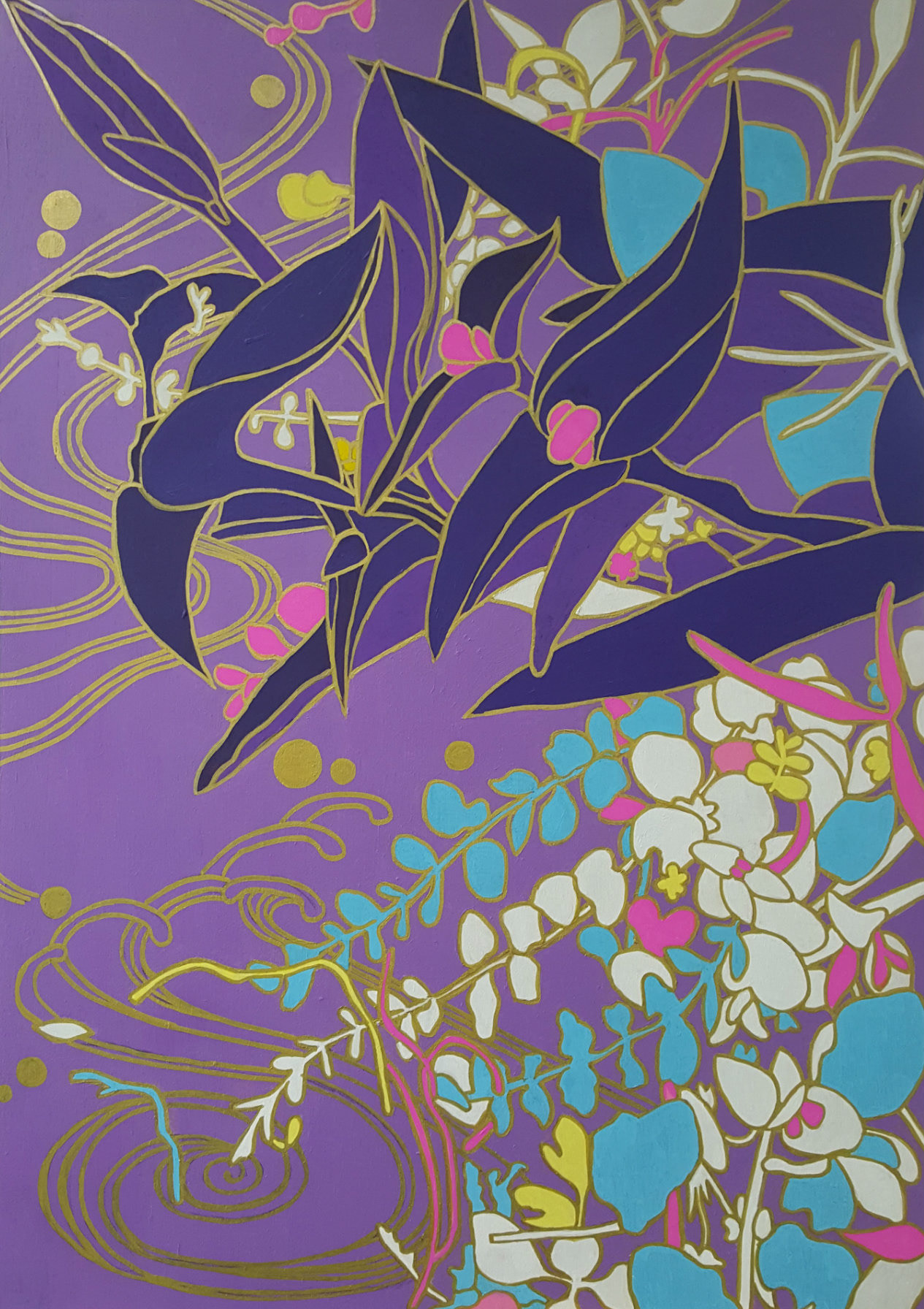 At Home with Being Lost Acrylic paintings on wooden panel, 2017 This body of work is centred on walking and the mundane paths we take each day. These paintings draw predominantly from viewpoints within my local area, where familiar routes take on new meaning when one is not native to their environment. The writings of Walter Benjamin and Charles Baudelaire introduce the concept of the flâneur — a figure whose experience of the city differs from that of the tourist. Rather than landmarks and spectacles, the flâneur moves through back streets and everyday spaces, engaging in flânerie: idle yet attentive strolling shaped by familiarity with place. As described by Larousse, the flâneur is someone who has: “His eyes open, his ear ready, searching for something entirely different from what the crowd gathers to see.” To live neither as a tourist nor as a native is to exist in a space of juxtaposition. My paintings emerge from this position. After living abroad for an extended period, I walk these paths with confidence and familiarity, adopting rhythms often associated with the native inhabitant. In walking to and from work each day, I come to understand these routes intimately, noticing details a visitor might overlook: seasonal shifts in flowering plants, or how early summer typhoons alter the surface of the streets. To move through a city with the eyes of a native while remaining visibly foreign is a tension-filled position to occupy. This state of being a “foreign native” carries both privilege and unease. I exist between the worlds of tourist and local, never fully at home in either. My paintings respond to this condition. I draw colour palettes from Japanese washi papers, using them to frame overhead perspectives of my journeys. This downward gaze suggests not only isolation, but also attentiveness. The viewpoints depicted are easily overlooked and could belong to almost anywhere. Yet something distinctly Japanese remains present, subtly reinforced through colour and material choice. My walk to work is never simply a walk to work. Each journey shifts with weather, light, and encounter — small variations that accumulate, morning and afternoon, day after day.