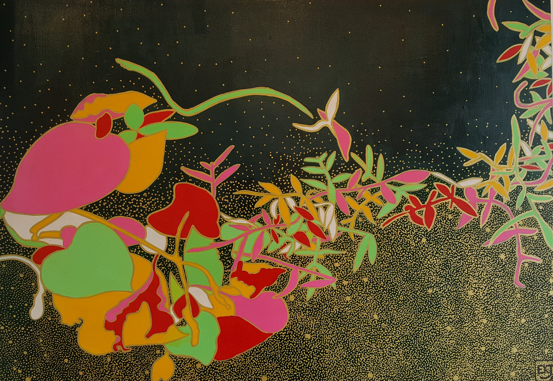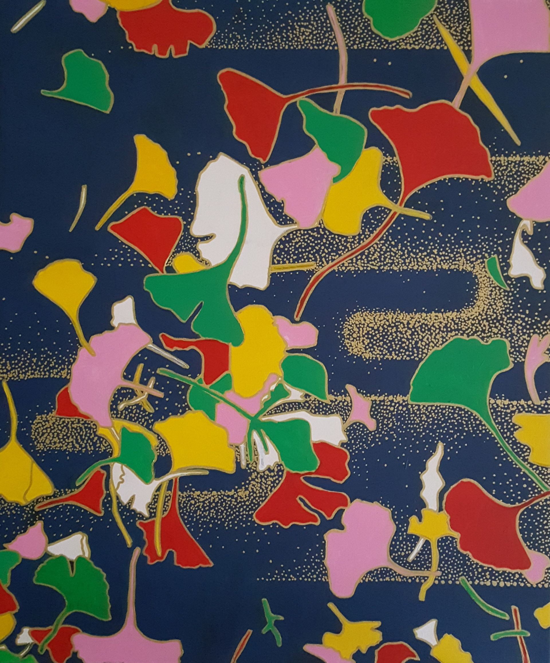 Ginkgo Formation, Acrylic on wooden panels. A3 x 3 SOLD