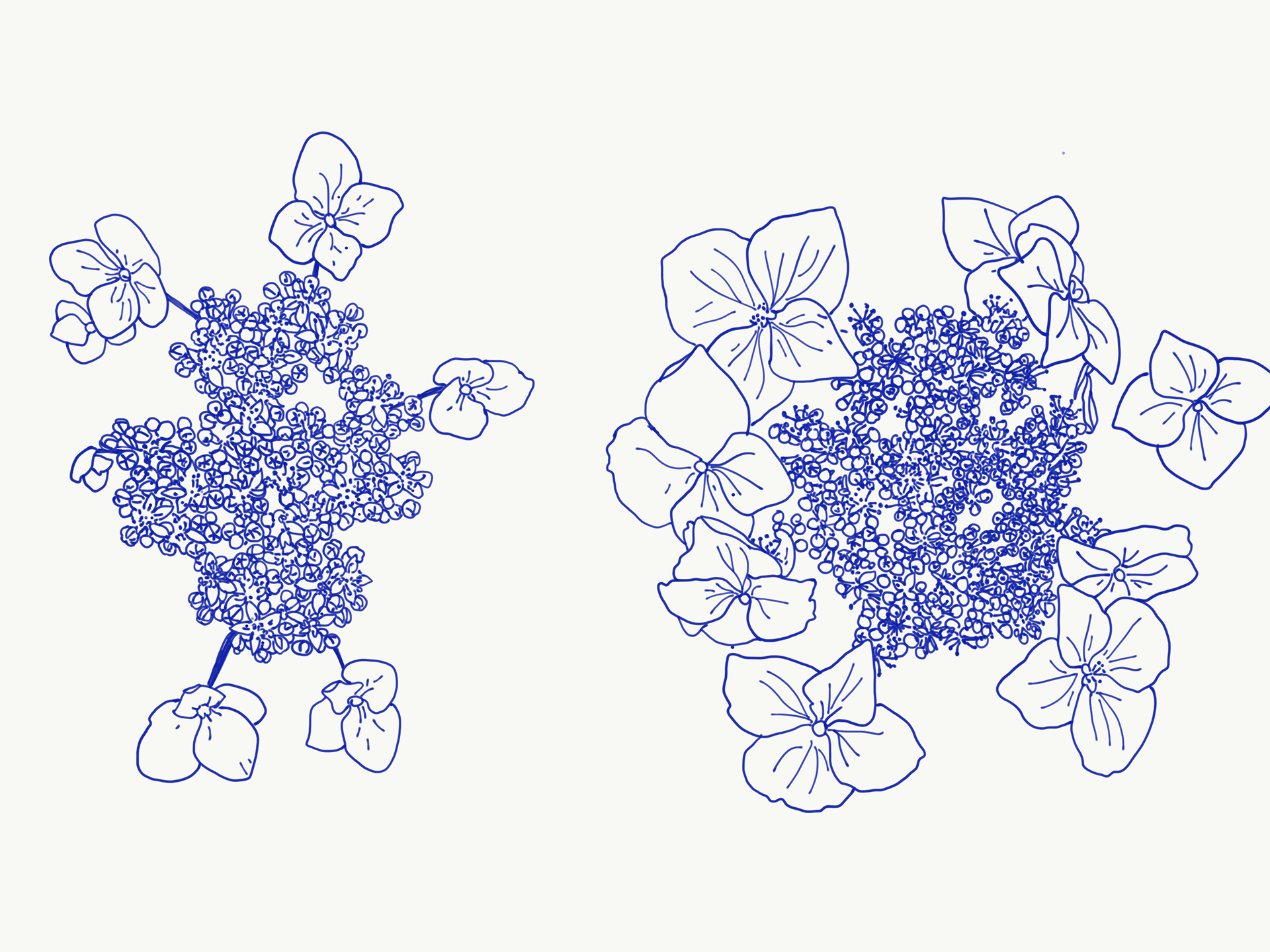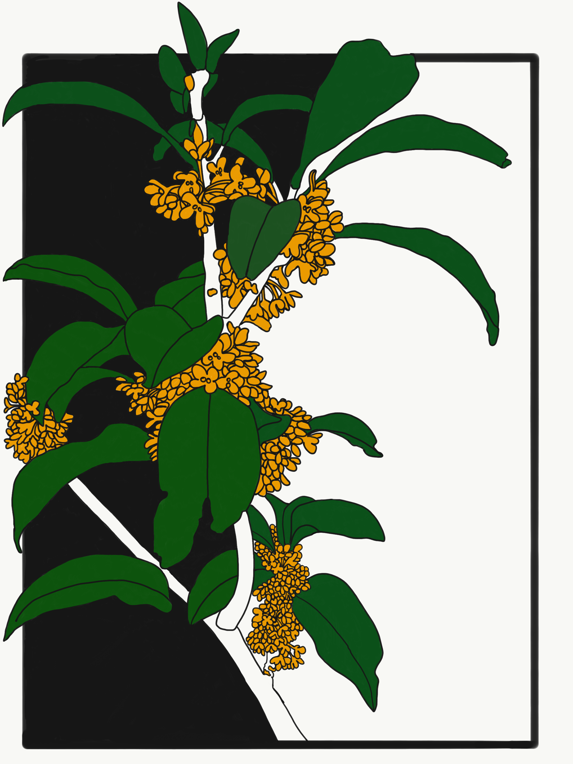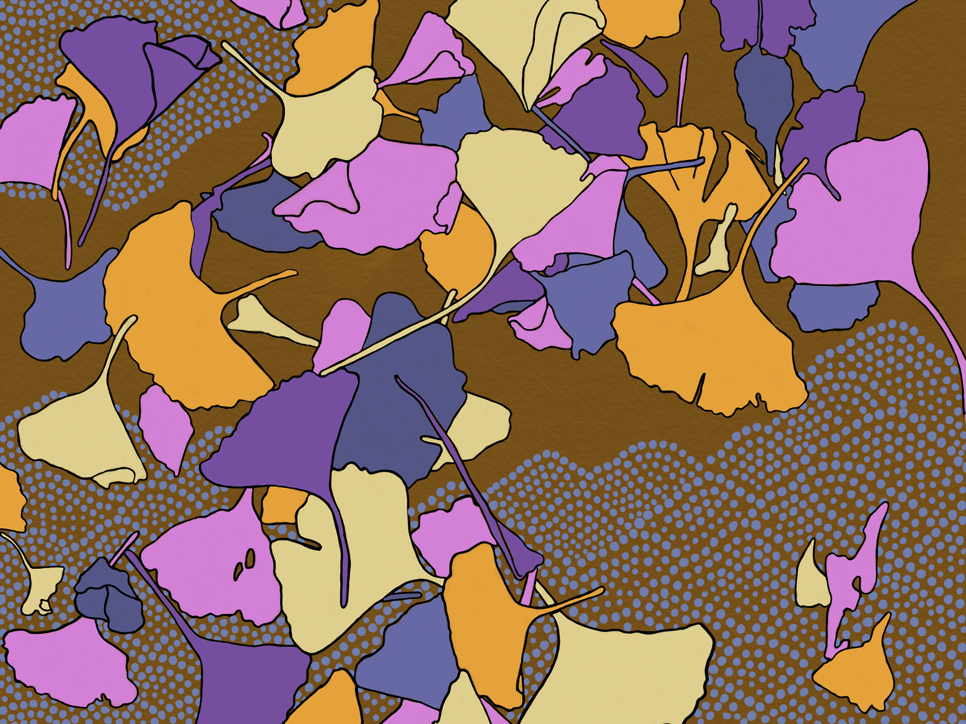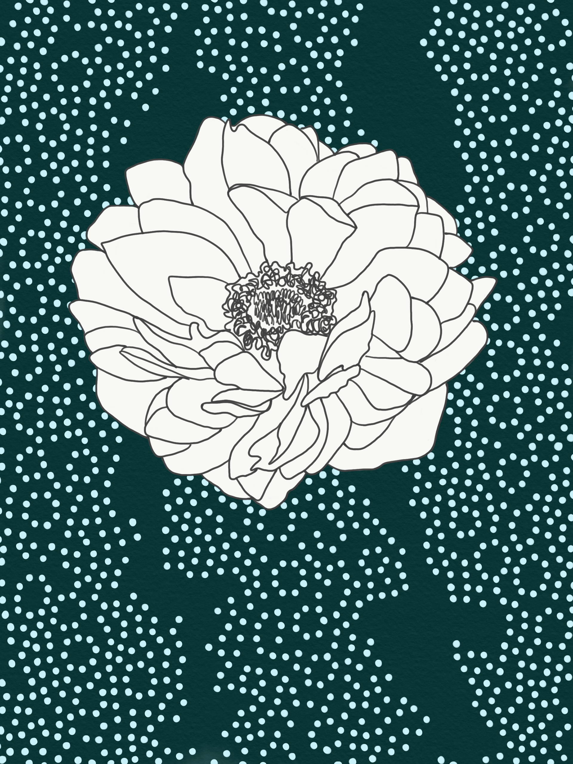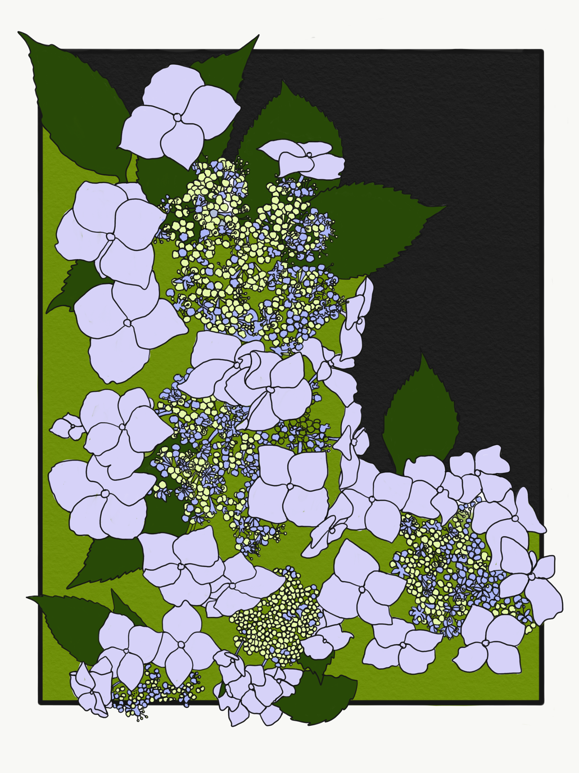 Illustrations from Naka-ku and Yamate-cho, Yokohama. These digital illustrations are drawn from close observation in Yokohama, tracing encounters with gardens, streets, seasonal plants, and moments of growth and decay. Working in a flattened, graphic language shaped in part by commissioned and commercial illustration, the works draw on Japanese visual traditions such as washi patterns, scattered compositions, and the balance between repetition and pause. Natural forms are abstracted into drifting clusters and rhythmic lines, echoing movement rather than description, and inviting the eye to wander through the image.