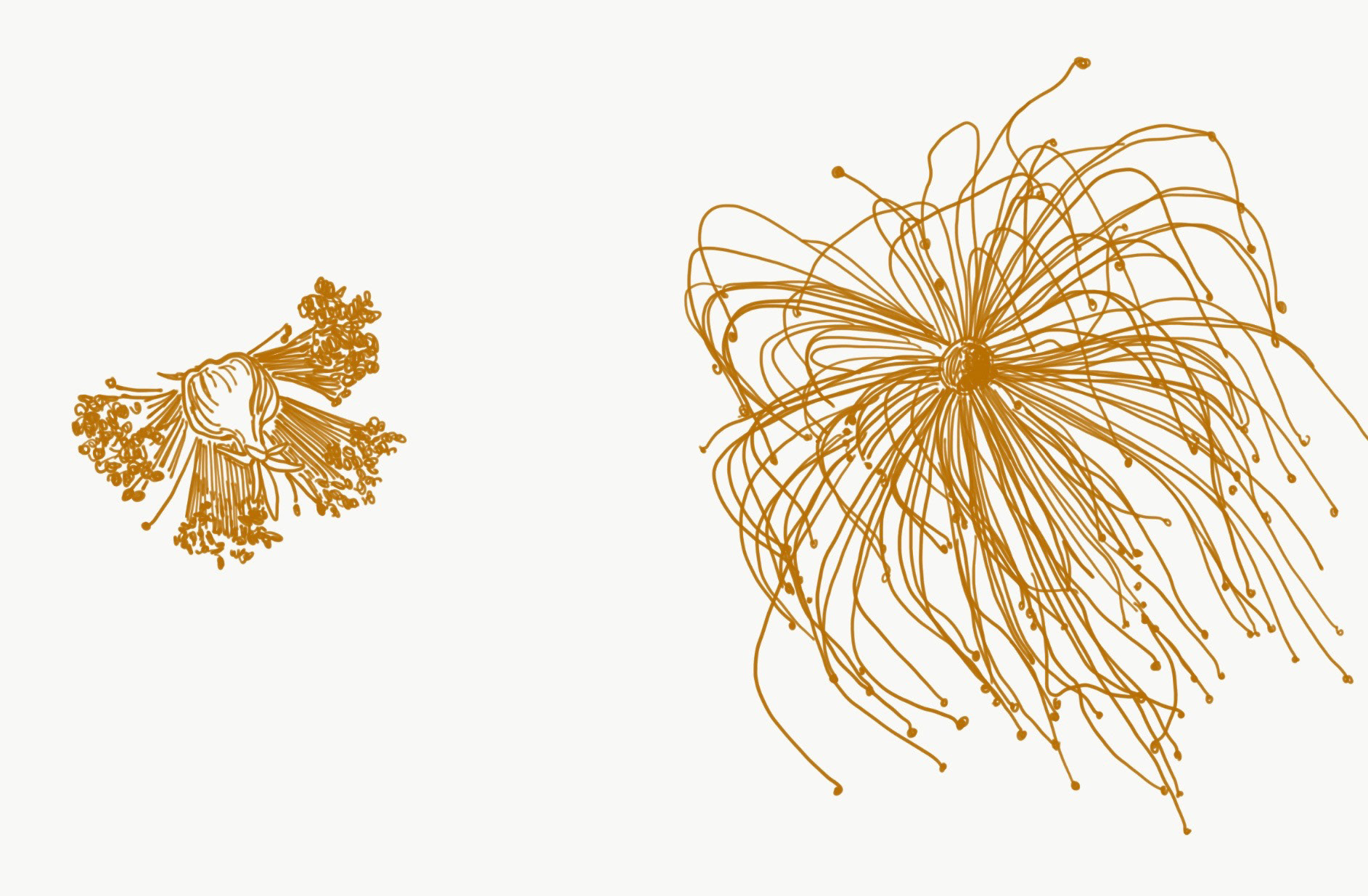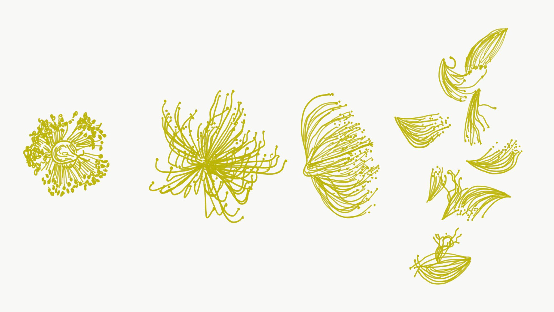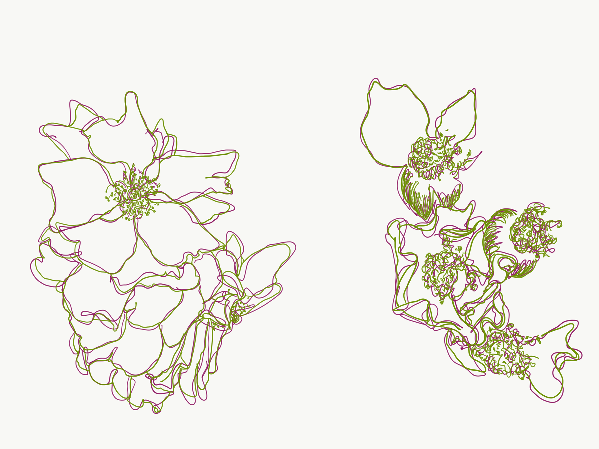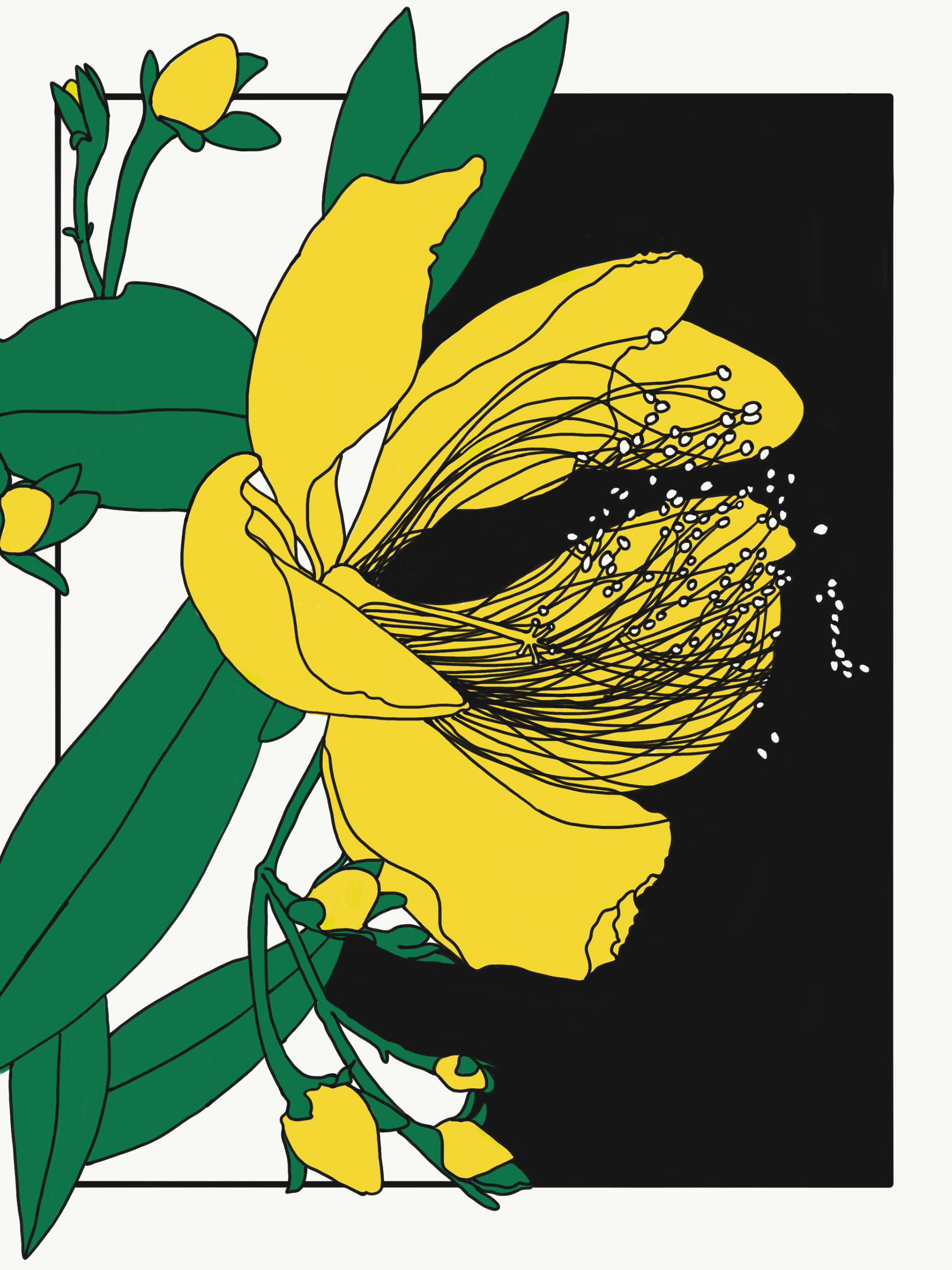 Illustrations from Naka-ku and Yamate-cho, Yokohama. These digital illustrations are drawn from close observation in Yokohama, tracing encounters with gardens, streets, seasonal plants, and moments of growth and decay. Working in a flattened, graphic language shaped in part by commissioned and commercial illustration, the works draw on Japanese visual traditions such as washi patterns, scattered compositions, and the balance between repetition and pause. Natural forms are abstracted into drifting clusters and rhythmic lines, echoing movement rather than description, and inviting the eye to wander through the image.