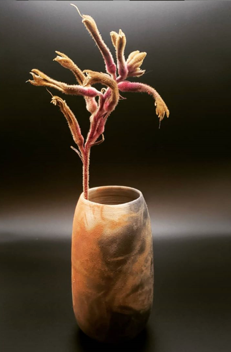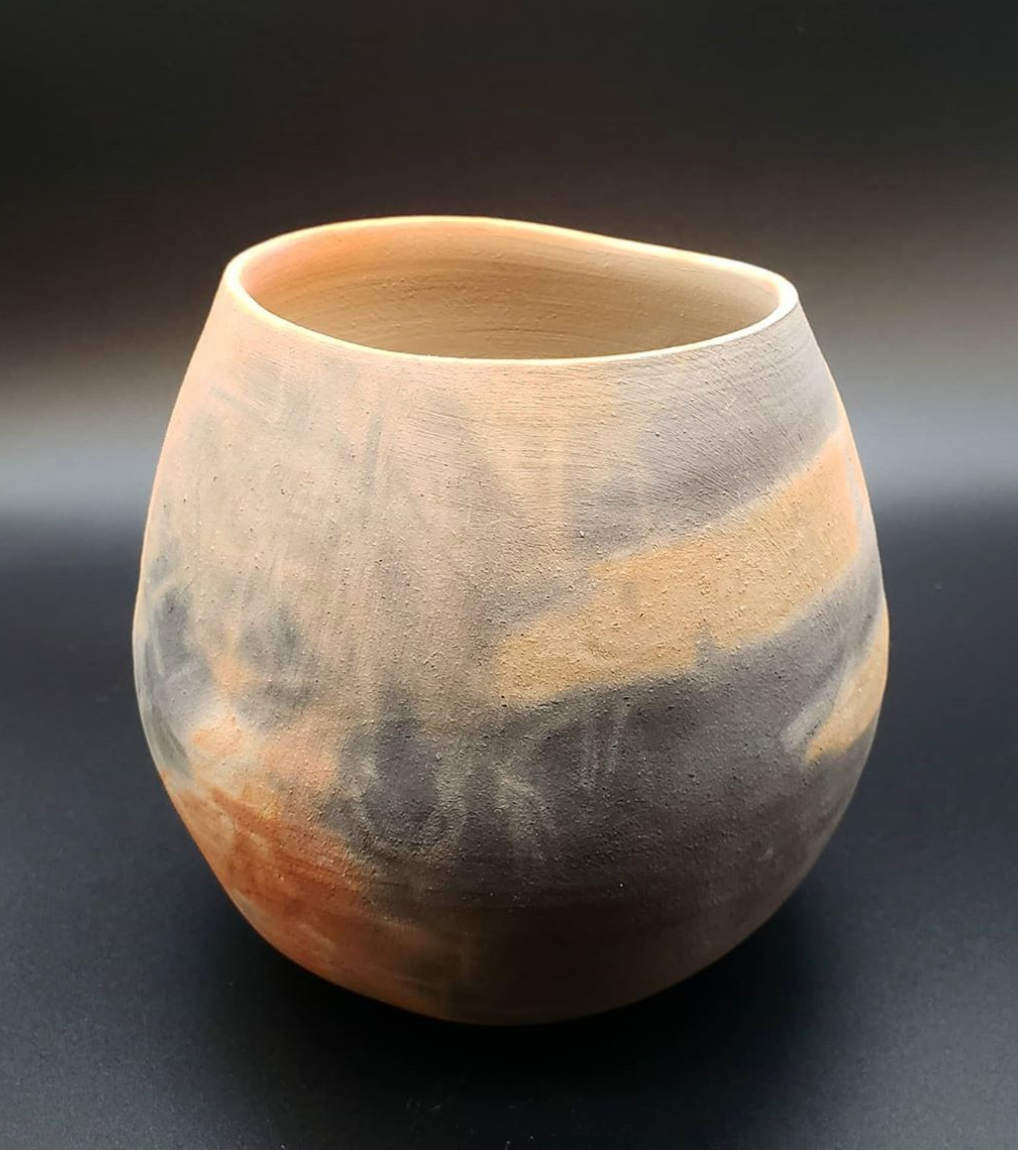 Oval Saggar Fired Vase- Red Mashiko Clay (banana peel and grass)