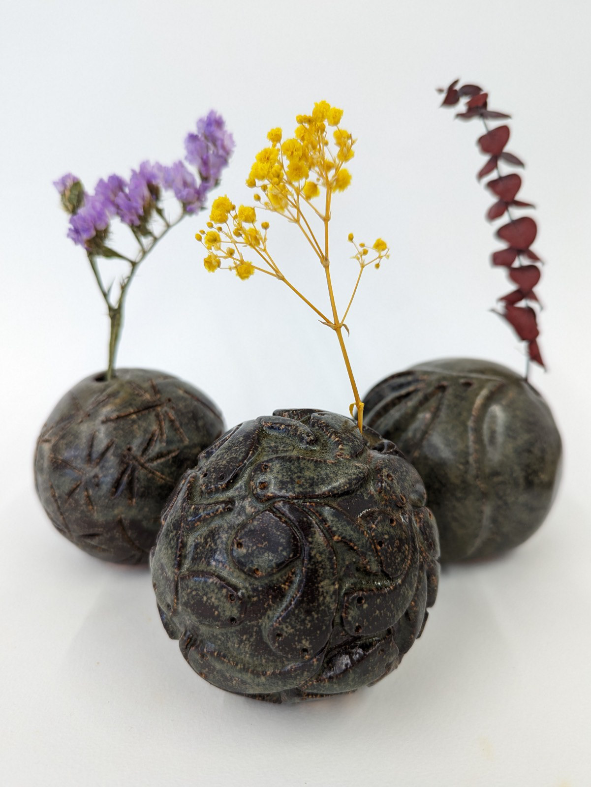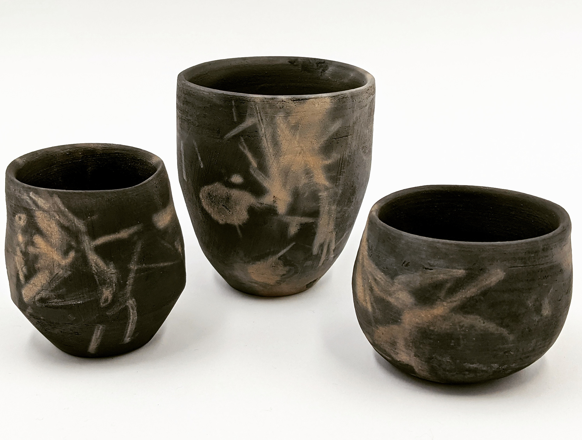 This series explores organic smoke firing using a sayabachi (saggar), drawing on Japanese ceramic traditions and low-temperature firing methods. Burnished functional vessels are enclosed with organic materials such as banana peels, citrus skins, and gathered plant matter including leaves and flower petals. As these materials combust, smoke and mineral traces mark the surface unpredictably, allowing chance, fire, and natural waste to collaborate in the final form. The works hold fleeting seasonal matter in permanent clay, emphasising impermanence, care, and the quiet intimacy of process.