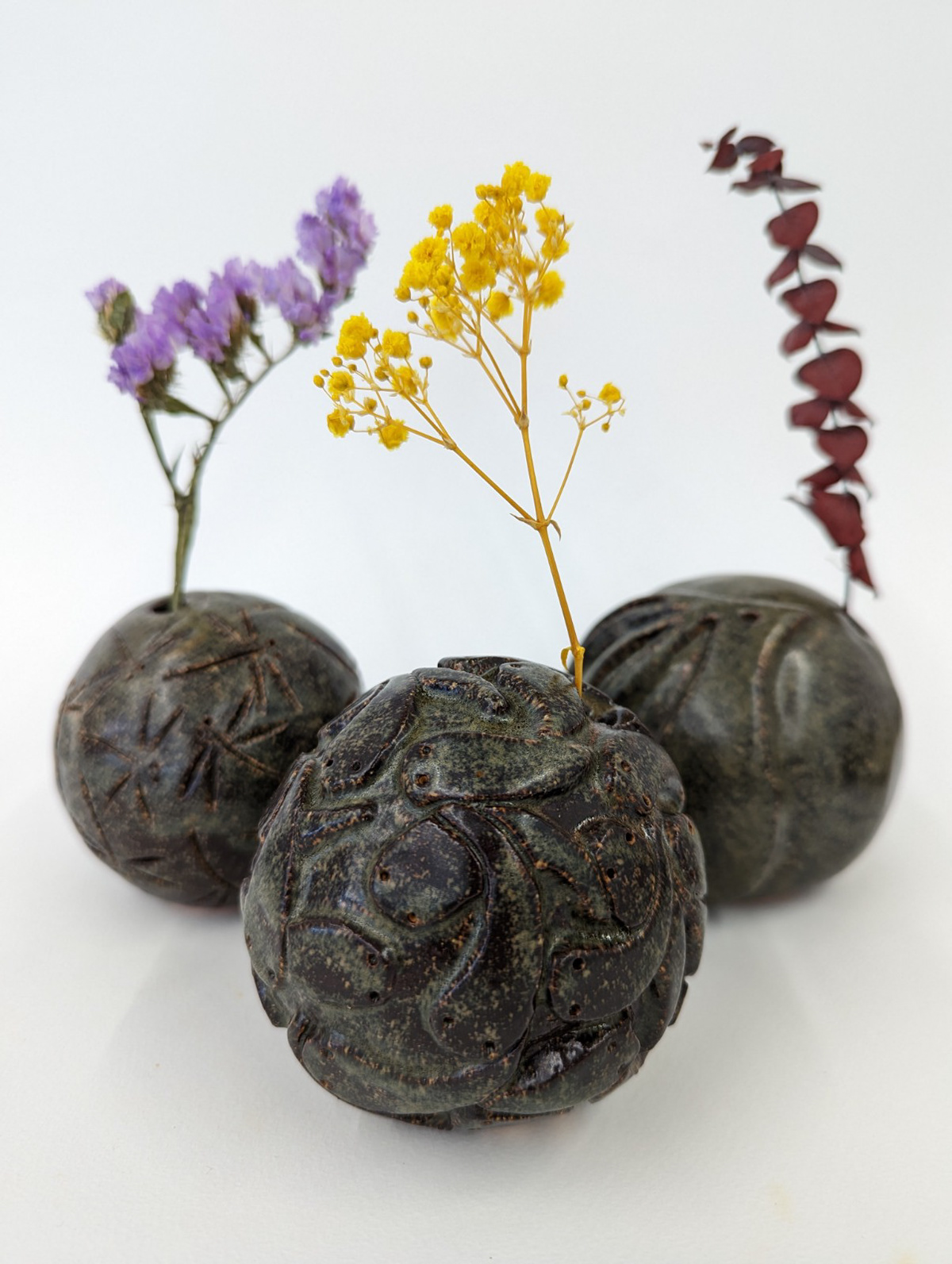 Twelve Years, Twenty-Four Seasons is a series of ceramic bud vases shaped by the Japanese microseasonal calendar (24 sekki) and the artist’s twelve years of living in Japan. Each vessel reflects a specific moment in the seasonal cycle, pairing form with small representational details, such as frogs, koi-nobori, or wagashi, that mark personal memory and cultural rhythm. Together, the works trace time as something lived and noticed, where seasons are remembered through objects, repetition, and care.